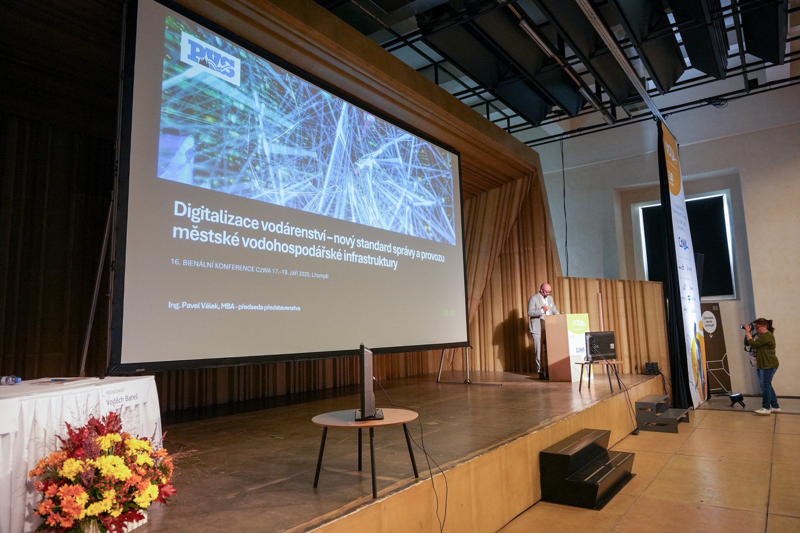 Vysoké účasti se vždy těší plenární sekce odehrávající se v hlavním sále (Jízdárně). Hovořilo se zde o digitalizaci ve vodárenství a současném stavu celého vodohospodářského sektoru, který zažívá v posledních letech zásadní technologickou proměnu. Přednáška Ing. Pavla Válka, MBA, z  Pražské vodohospodářské společnosti (PVS) otevřela živou diskusi o výzvách spojených převážně s kybernetickou bezpečností, legislativním rámcem a nutností systémového přístupu ke správě dat v prostředí, kde digitalizace zasahuje jak technickou, tak organizační úroveň vodárenských společností.