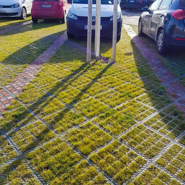 Velkou výhodou je také šetrnost instalace. Konstrukce zasakovacích roštů je samonosná, proto nevyžaduje výrazné úpravy terénu ani hluboké výkopy. To je zásadní v případech, kdy se pracuje v blízkosti existujících stromů a je třeba vyhnout se poškození kořenů. Nízká výška konstrukce navíc umožňuje zachovat původní profil terénu a přirozené proudění vody v půdě. Díky speciálním spojovacím zámkům se rošty jednoduše sestavují do stabilního celku, který má dostatečnou únosnost i pro pojezd vozidel.