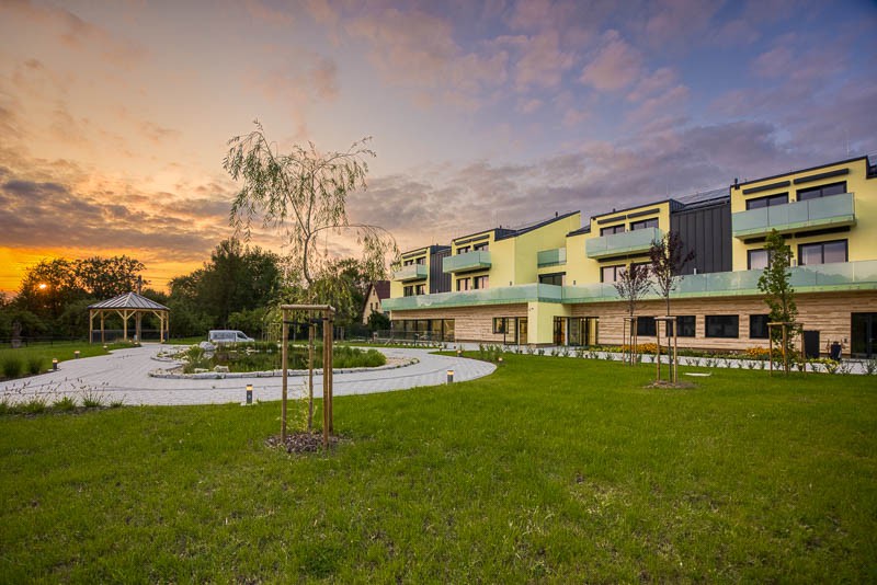 Velký důraz byl kladen také na venkovní prostory. Ty jsou navrženy tak, aby byly bezpečné, přehledné a snadno přístupné pro všechny obyvatele domova.
