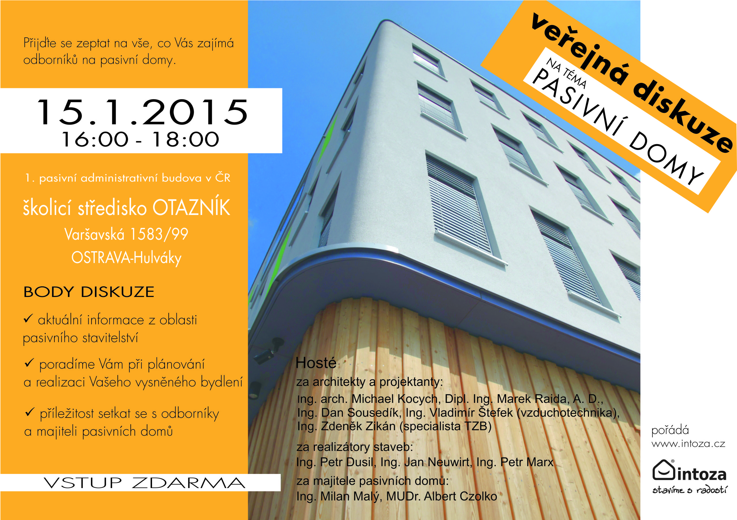 čtvrtek 15.1.2015 16:00 - 18:00 Veřejná diskuze na téma Pasivní domy