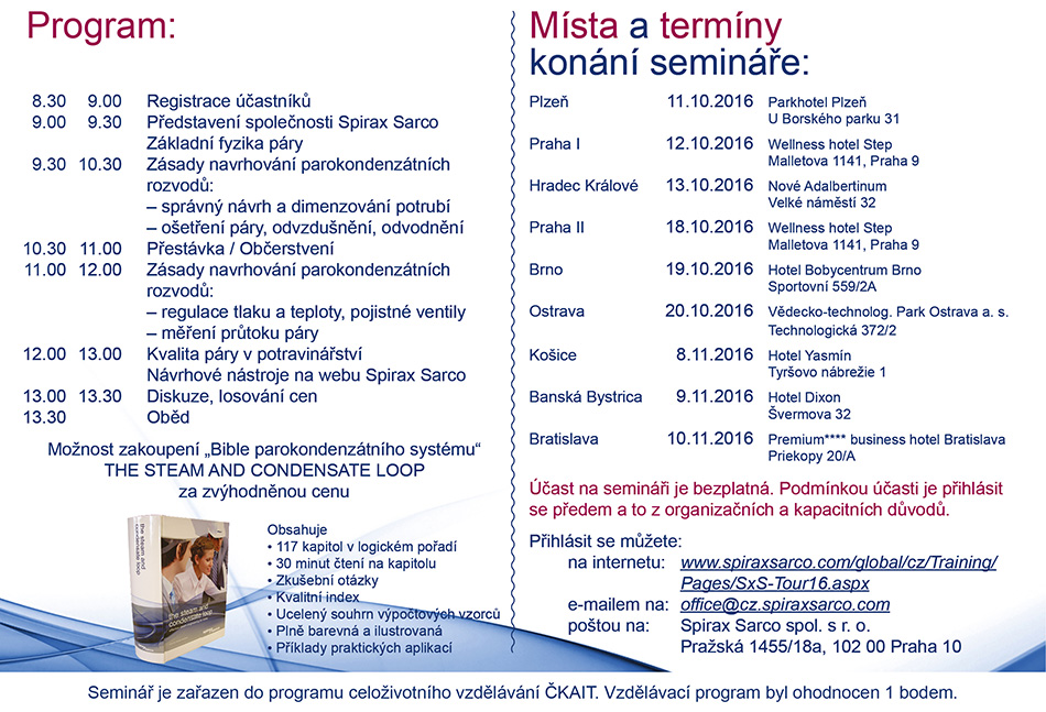 úterý 8.11.2016 8:30 - 13:30 Spirax Sarco Tour'16 - Průvodce světem parních technologií