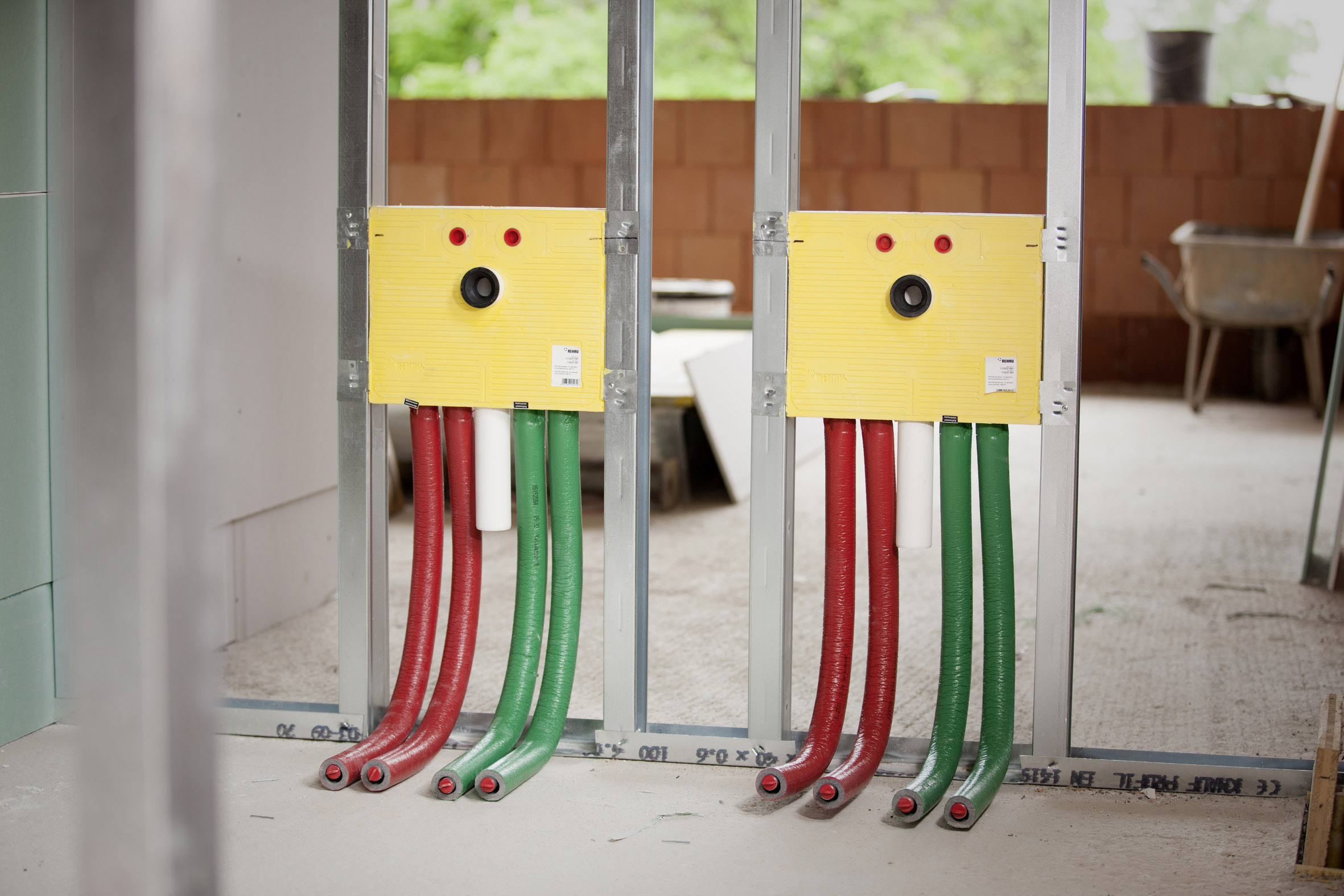 Instalační systémy REHAU doplňují praktické sanitární boxy Rautitan, které zjednodušují a urychlují napojení rozvodů vody v koupelnách nebo kuchyních. Jedná se o prefabrikovanou montážní jednotku, která precizně propojí všechny zařízení sanitární techniky (umyvadlo, sprcha, dřez atd.). Výhodou těchto boxů je flexibilita montáže, rychlost a hlavně přesnost – eliminace chyb instalatéra. Obsahují perfektní izolaci a samozřejmě vývody. Jsou nabízeny v různých variantách a velikostech podle potřeby.