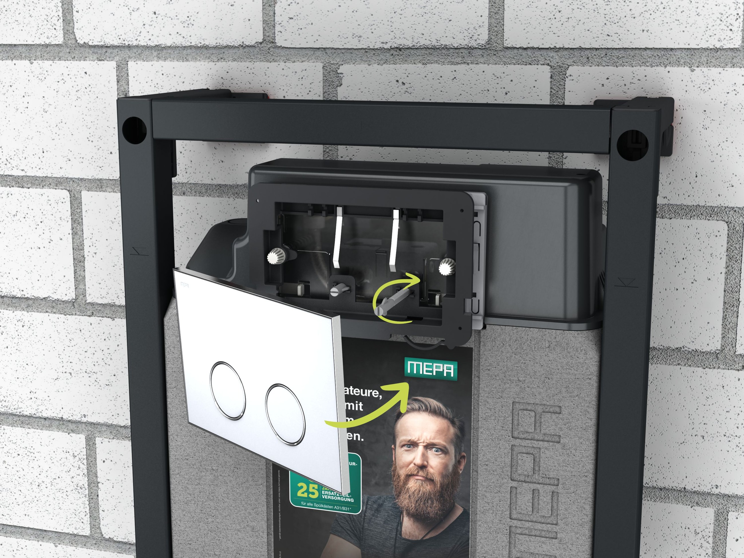Předstěnový instalační systém MEPA nextVIT®, nabízený pod hlavičkou společnosti REHAU, využívá inovativní technologii EasyConnect. Ta umožňuje spojování jednotlivých komponentů bez použití nářadí, což výrazně snižuje riziko vzniku chyb při montáži a současně celý instalační proces výrazně urychluje. V praxi tak stačí jednotlivé díly jednoduše zacvaknout do sebe. Řešení závěsného WC prostřednictvím systému MEPA je možné použít u všech typů konstrukcí včetně sádrokartonových. Modul je možné instalovat na pevnou stěnu nebo do niky mokrým procesem (Unimont® WC modul A31), nebo do sádrokartonové konstrukce suchým procesem (nextVIT modul A31).