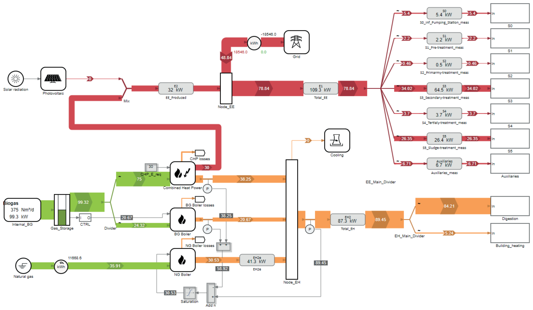 Obr. 6. Energetický model ČOV