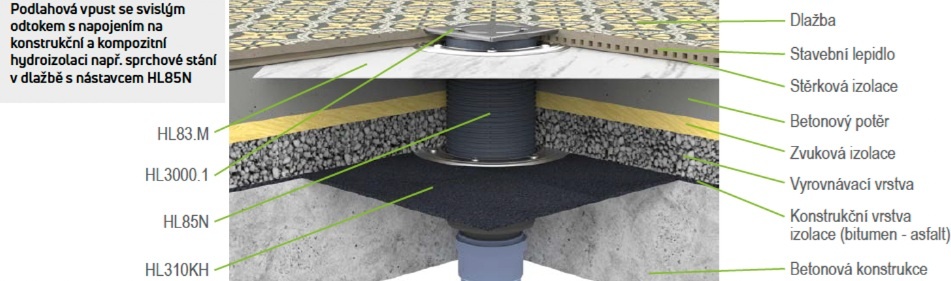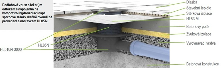 S nízkou stavební výškou se podlahové vpusti HL dají umístit do všech skladeb podlah s dlažbou nebo stěrkovou podlahou. Mezi nejnižší podlahové vpusti patří např. HL90Prblue, HL541 a HL542Prblue.