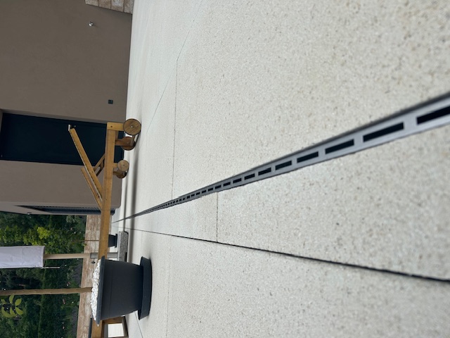 Pro realizaci byly zvoleny odvodňovací žlaby MEAFLUID, doplněné o ocelové štěrbinové nástavce TSL s nerezovým designovým krytem E-Blade. Výsledkem je čisté, minimalistické řešení, které se perfektně začlení do moderní architektury rodinného domu.