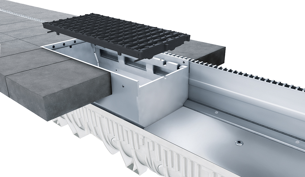 Systém štěrbinového odvodnění MEA umožňuje velkou hydraulickou kapacitu. Úzká štěrbina na povrchu působí elegantně a nenápadně, zatímco pod povrchem se skrývá robustní žlab, který efektivně odvádí dešťovou vodu i při silných srážkách.