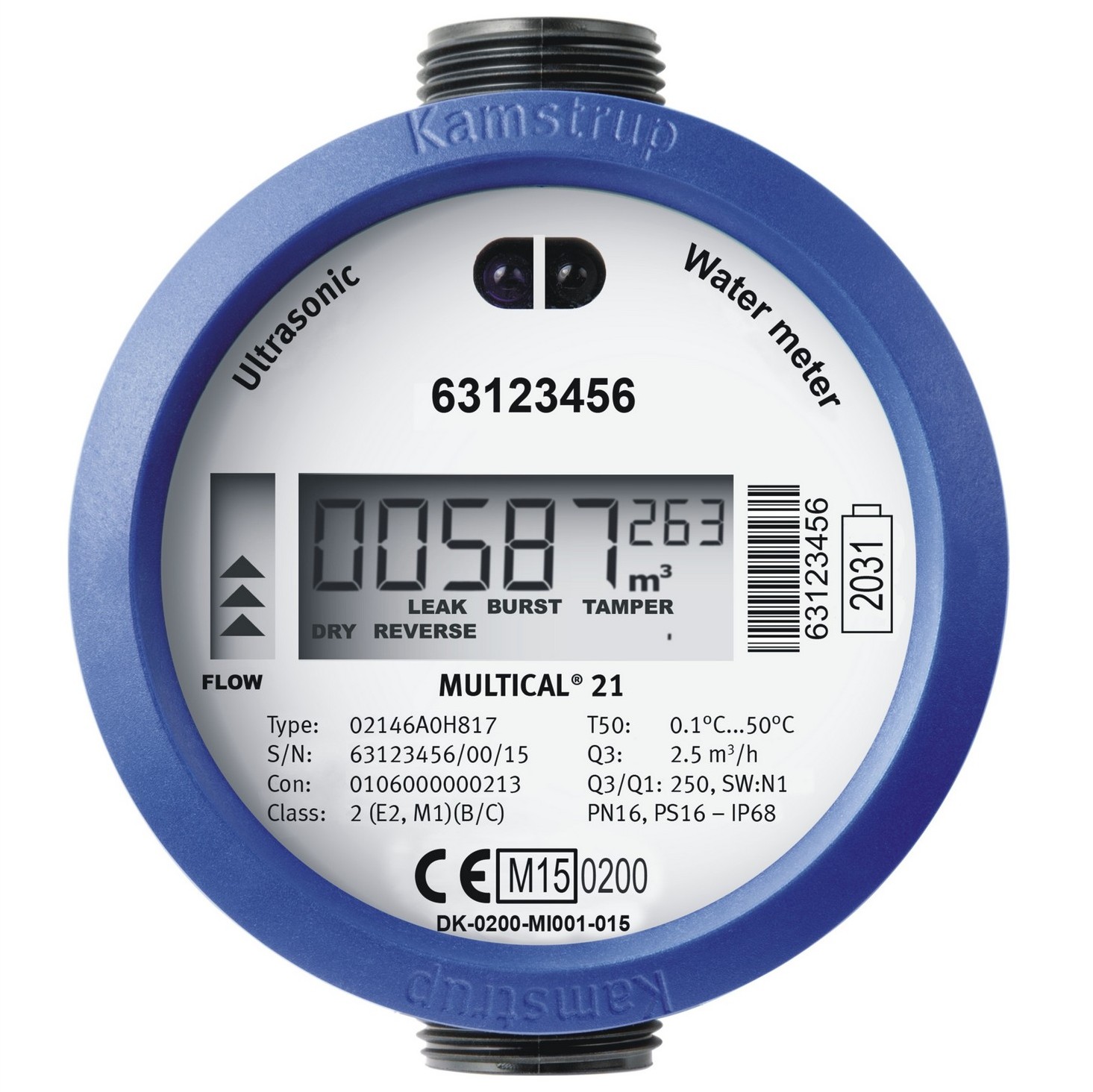 Vodoměry Kamstrup Multical 21 jsou tím nejlepším, co v současné době lze v nabídce vodoměrů s radiomodulem naleznout. Jde o plně elektronické ultrazvukové vodoměry s vysokou přesností měření ve všech montážních polohách. Tyto vodoměry neobsahují žádné pohyblivé části a nejsou ovlivnitelné magnetem. Díky nízké světlé výšce se vejdou i do mělkých instalačních míst. Životnost vodoměrů je 16 let, po pěti letech je vždy nutné provést ověření a počítat s náklady na demontáž a zpětnou montáž. Z pohledu v časovém horizontu tří ověřovacích období vychází jednoznačně cenově výhodněji než méně přesné mechanické vodoměry s radiomodulem. Vodoměr je vybaven zabudovaným dálkovým odečtem a lze jej odečítat z chodby nebo integrovat do systému pro ONLINE přenos dat.