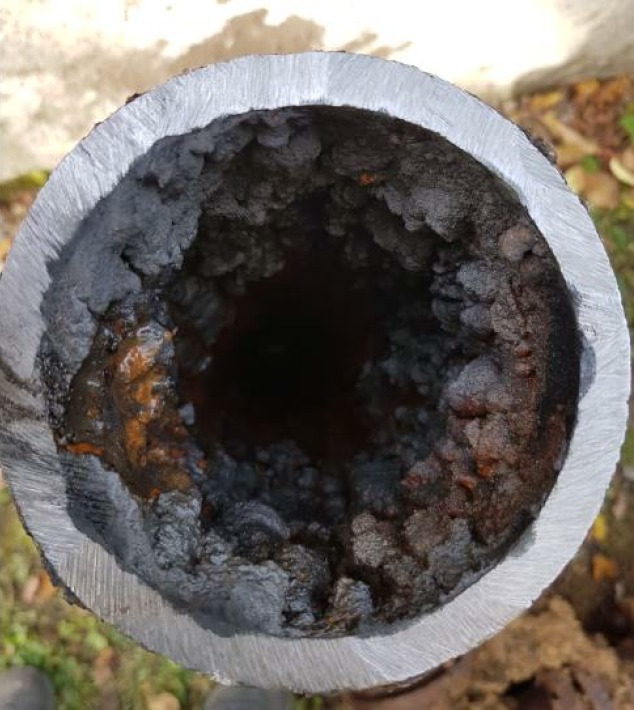 Obrázek 1a. Inkrustované litinové potrubí DN 100 výřez