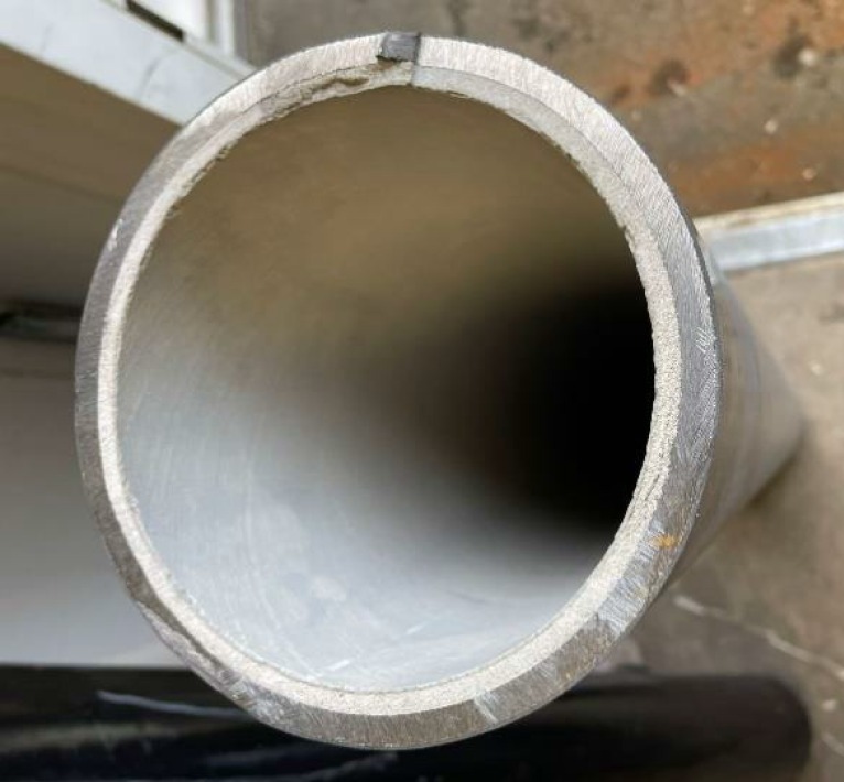 Obrázek 1. Inkrustované litinové potrubí DN 100 výřez v porovnání s novým TLT potrubím