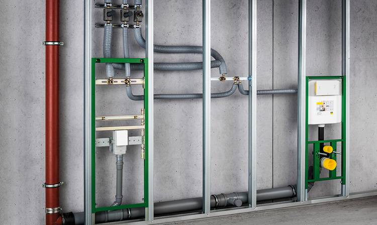 Obr. 9 Hygienický box „TECEflex“, pre studenú a teplú vodu v zmysle hygienických požiadaviek. b – do predstenovej inštalácie na spoločnej kotviacej lište [13]
