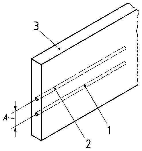 1 – potrubie studenej vody, 2 – teplovodné potrubie, 3 – stena (podlaha) [4]