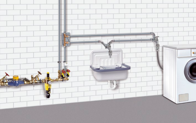 a, b – pre 1 prívod vody s prietokom do 3 l/min (vhodné pre prázdne byty, sezónne využívané objekty, pripojenie napr. na záhradný ventil, alebo pod umývadlo) c – na dodatočnú inštaláciu do podomietkovej splachovacej nádržky WC s preplachovacím prietokom 2 × 4 l/min, d – pre viacero vodovodných okruhov v budove, e – samostatná hygienická jednotka s 1 alebo 2 prívodmi vody s väčšími prietokmi – 2 × 10 l/min umiestnená v inštalačnej predstene pod stropom, (stúpacie potrubie studenej vody je vedené oddelene pri odpadovom potrubí kanalizácie vľavo, stúpacie potrubie teplej vody a cirkulácie samostatne vpravo)