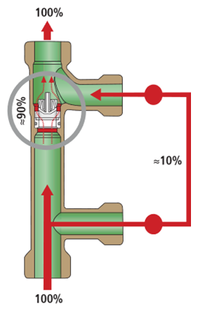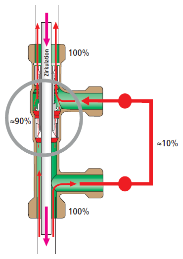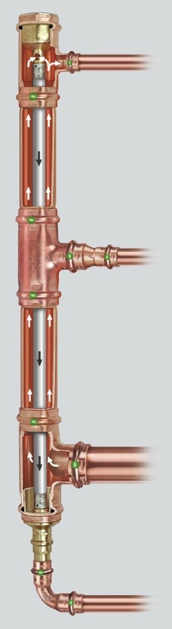 Obr. 4 Rozdeľovač prietoku zabraňuje stagnácii vody núteným prietokom pri otvorení armatúry v akomkoľvek odbernom mieste v budove [f. Kemper]
